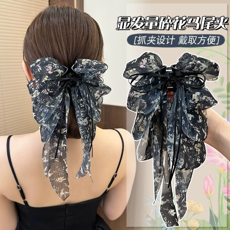 女性の後頭部のポニーテール用のスーパーフェアリーフローラルリボンクリップ、ハーフタイヘアピン、新しいサメクリップヘアアクセサリー、ヘッドバンド