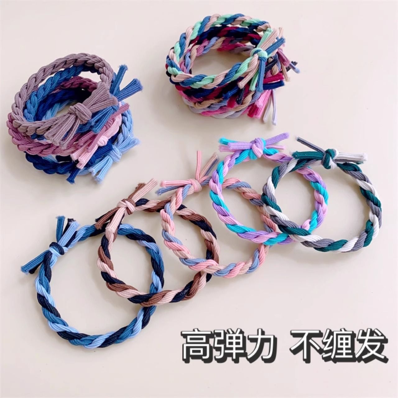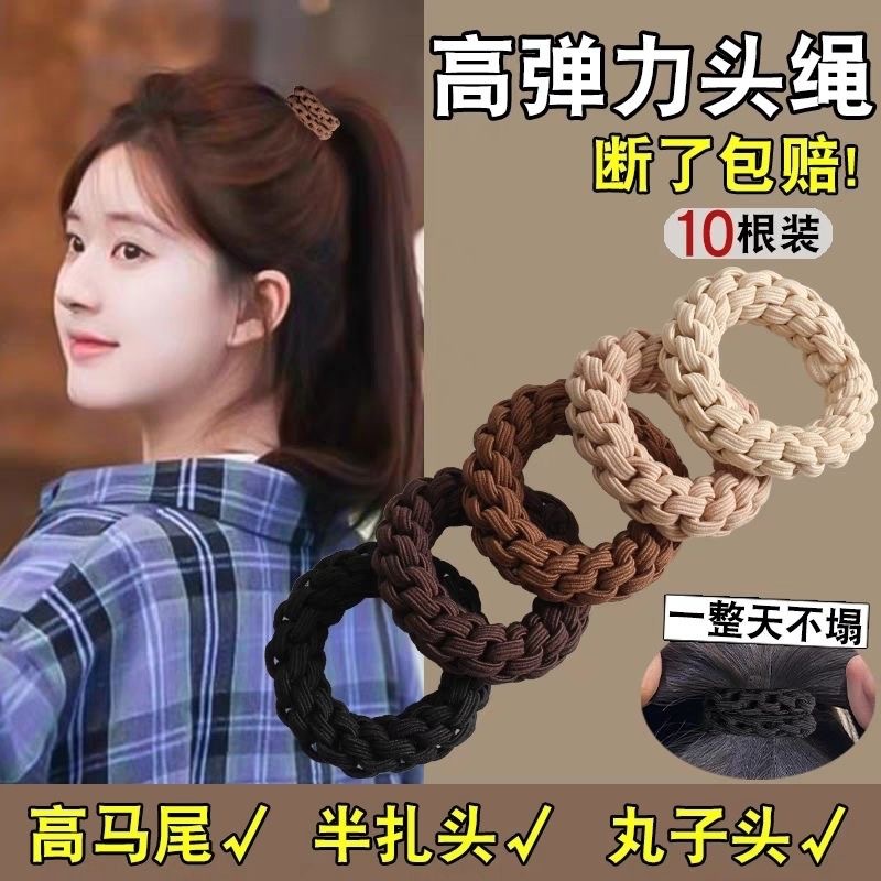 シンプルなヘアロープ、高弾性で耐久性のあるヘアロープ、新しい編み込みゴムバンド、ヘアゴム、厚いレザーケース