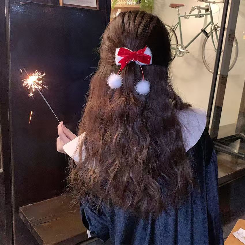 秋と冬のベルベットベルベット女の子プリンセス新年大きな赤いリボンゴールデンラブクリップヘアアクセサリー