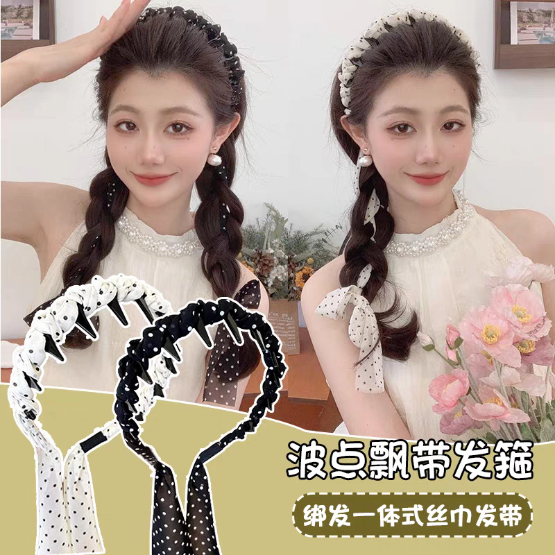 新商品の波点蝶結びのカチューシャのワイド版のカチューシャはシンプルなカチューシャの高い頭の上で髪を押して外に出るカチューシャの女性の潮です。