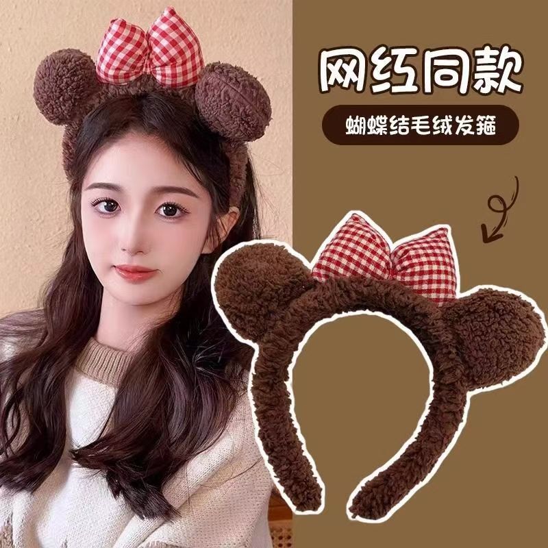 かわいいクマのリボンぬいぐるみヘッドバンド女性のヘアピン外出多用途気質洗顔ヘッドバンドヘッドバンド