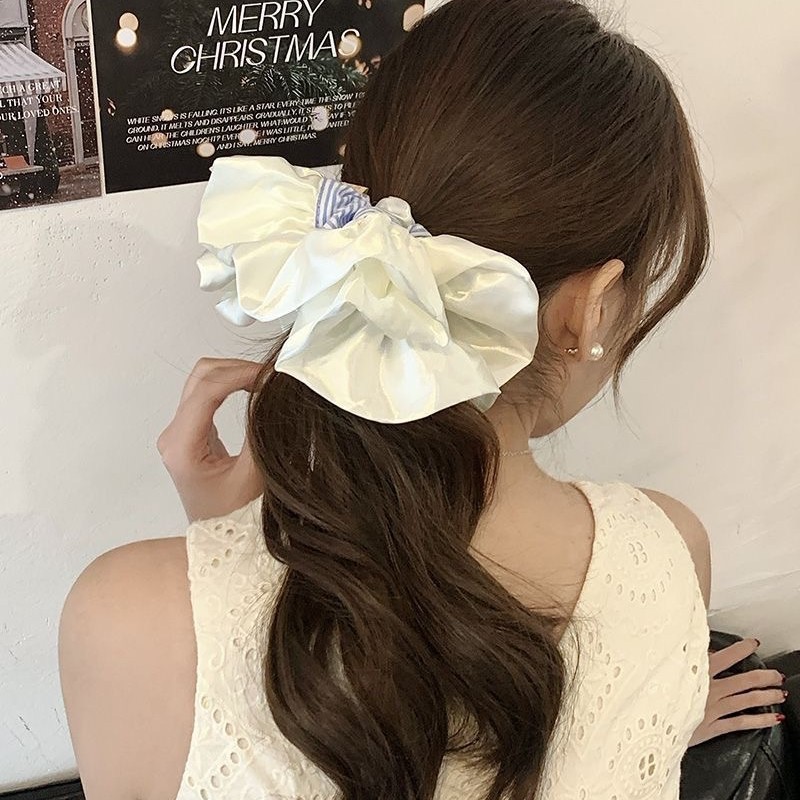 バレエ風サテンブルーストライプヘアゴム韓国特大女性の高級ヘアロープゴムバンドヘアゴム