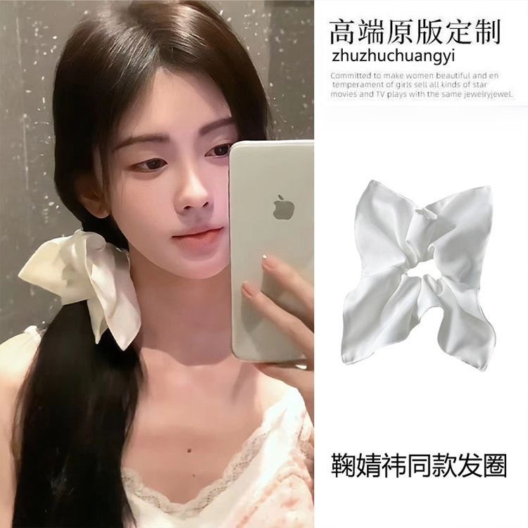 Ji Jingyiと同じスタイルの純白の正方形のスカーフ、ヘアゴム、クリームのような甘い女の子の後頭部のヘアロープ、ヘアロープ、女性用ヘアアクセサリー