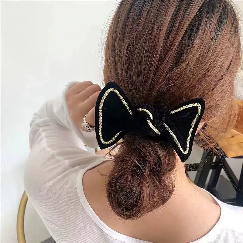 秋と冬のレトロな赤いベルベットのリボンヘアロープ女性のインターネット有名人の大きな黒いヘアロープ後頭部ヘアゴム