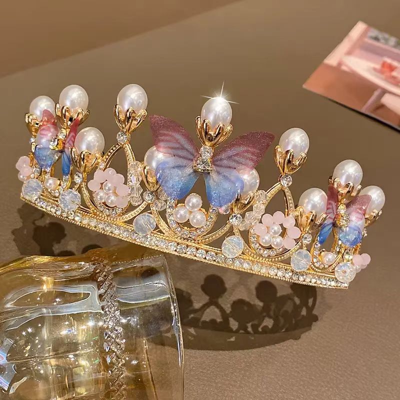 新しい子供の王女の誕生日の王冠のショーの髪飾りの新婦の蝶の手作りの王冠の髪飾りのメーカーの卸売り