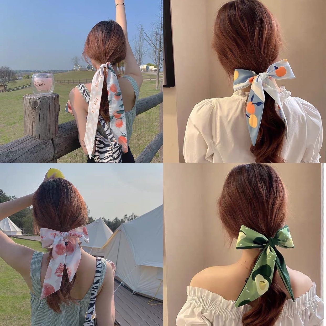 春と夏の優しさと果物の組み合わせのヘアバンドの女性の髪のシルクタオルの森系の超仙の髪の紐は2025年の早春に外出します。