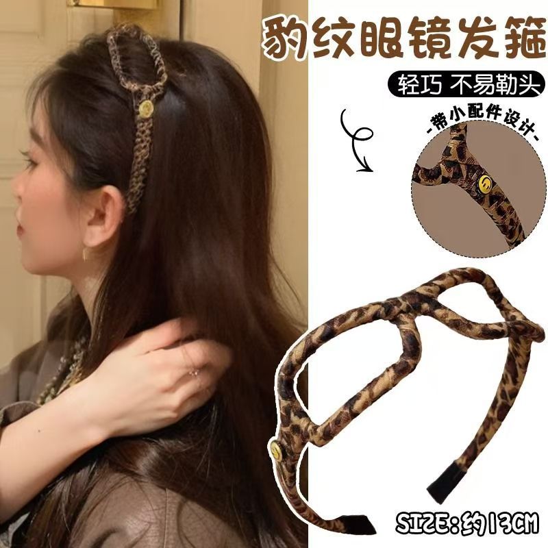 レトロなヒョウの紋様の布のメガネのカチューシャの笑顔のヒョウの紋様のカチューシャの髪の束は外出します。