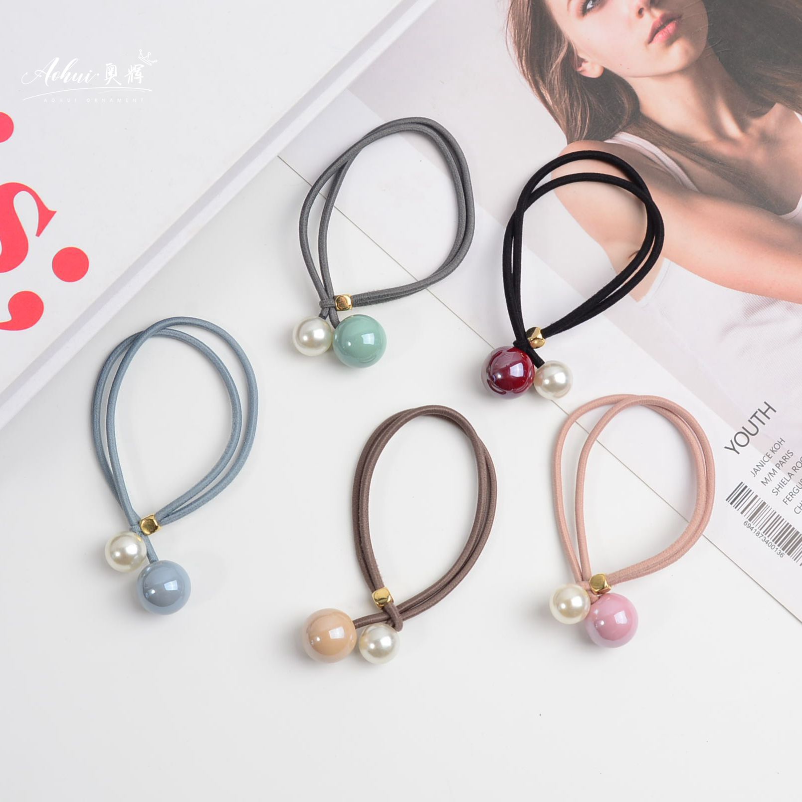 新商品のシンプルでハイライト真珠の紐の髪輪の少女は髪のゴムの紐の義烏の髪飾りのカバーの卸売りをします。