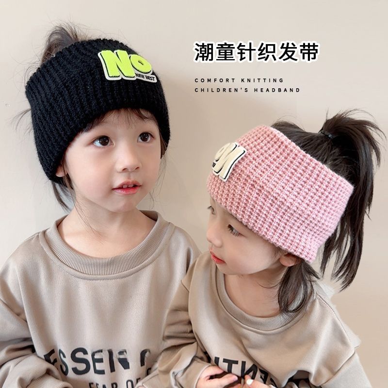 子供の秋の暖かい毛糸のヘアバンドの女の子の防風の潮流のアルファベットのニットのヘアセットの甘いクールな風のファッションの毛糸の帽子