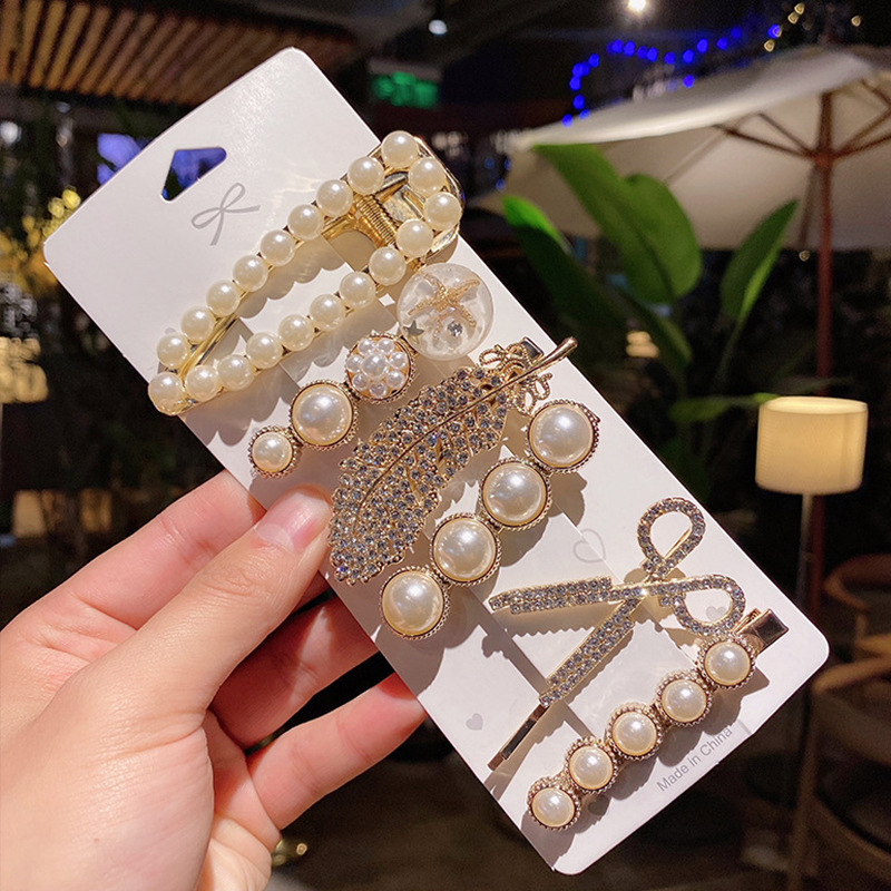 韓国版ins新型レトロ真珠ドリル5点セットのヘアピン生放送の頭飾りセット
