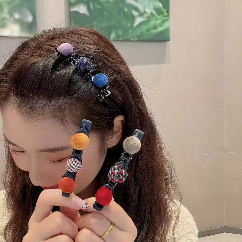 新しいスタイルの小さな香りのボール編み込みヘアピン、編み込みサイドクリップ、二重層前髪クリップ、女性用の散乱した髪を整理するヘアピン