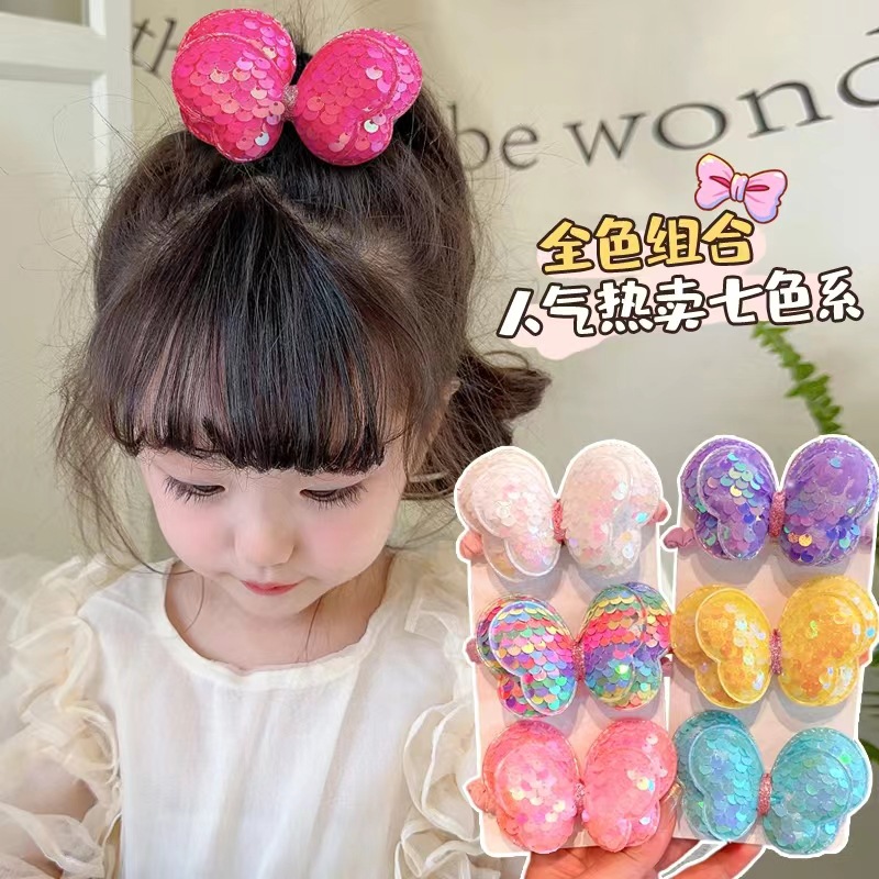 スパンコール蝶ヘアロープ子供ヘアリング傷なし髪蝶結紮高ポニーテール女の子ヘアゴム頭飾り