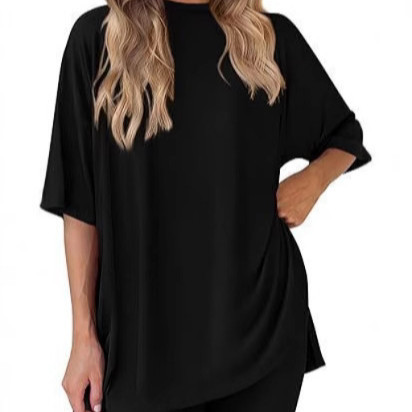 国境を越えた貿易婦人服 2025 新しい女性のカジュアルラウンドネックスプリットルーズショーツ半袖ホームウェアスーツ女性