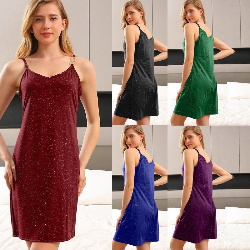 2025年春夏新作クロスボーダー貿易スリムサスペンダーVネック大裾無地スリムフィットセクシードレス