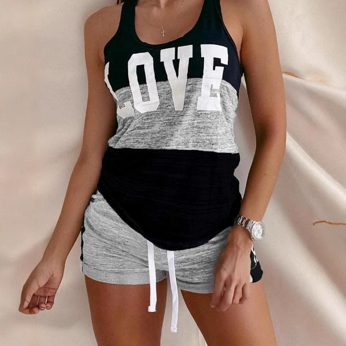 2025 女性の新しいヨーロッパとアメリカの夏の新しいカジュアルカラーブロックラウンドネックノースリーブバックレス中空スリムスカートスーツ