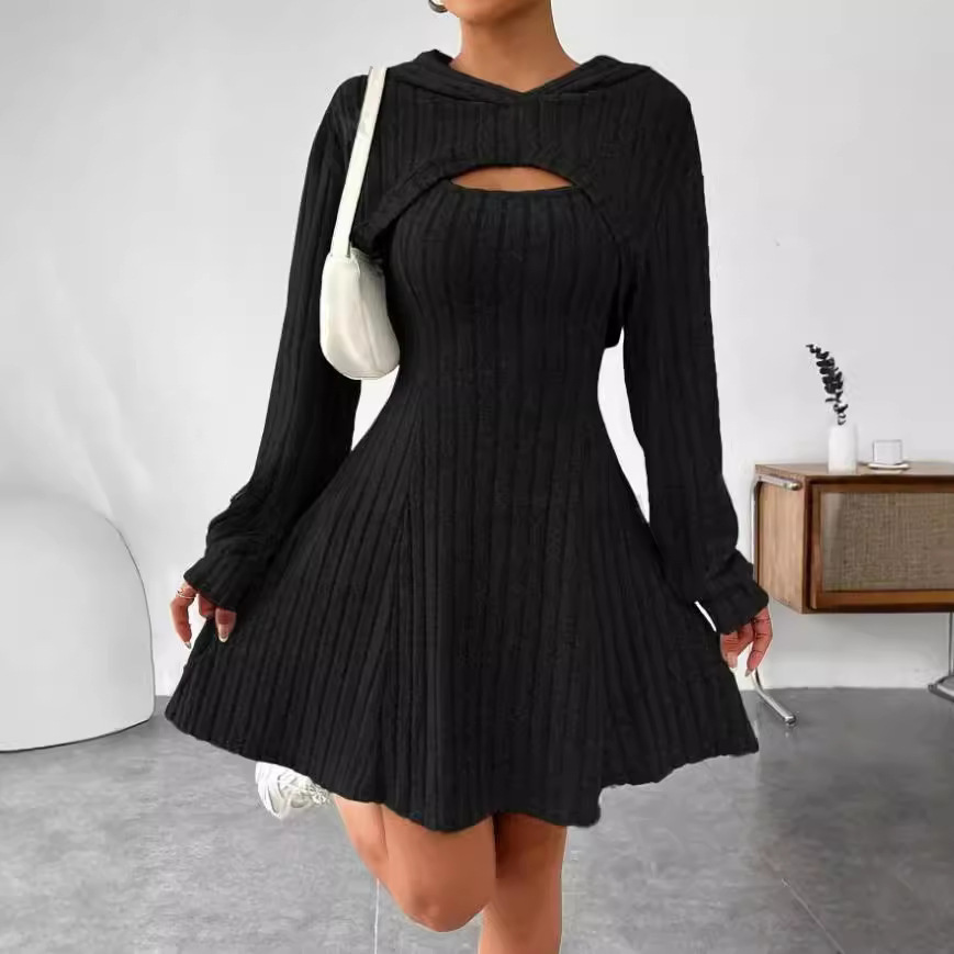 2025 ヨーロッパとアメリカのクロスボーダー秋と冬のフード付きショールドレスショートスカート 100kg 大きいサイズの女性の長袖ファッションスーツ