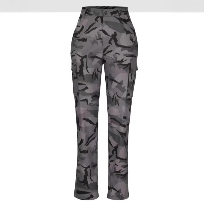 美式复古迷彩多口袋女士工装裤春秋季新款嘻哈直筒显瘦工装裤