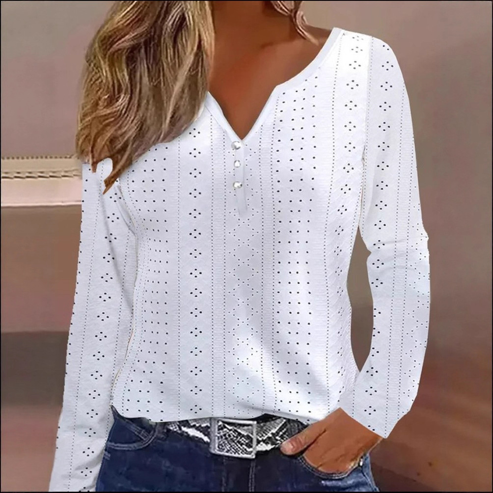 2025 独立したウェブサイトウィッシュアマゾン人気の秋冬の新ファッション V ネックレース長袖シャツシャツ女性