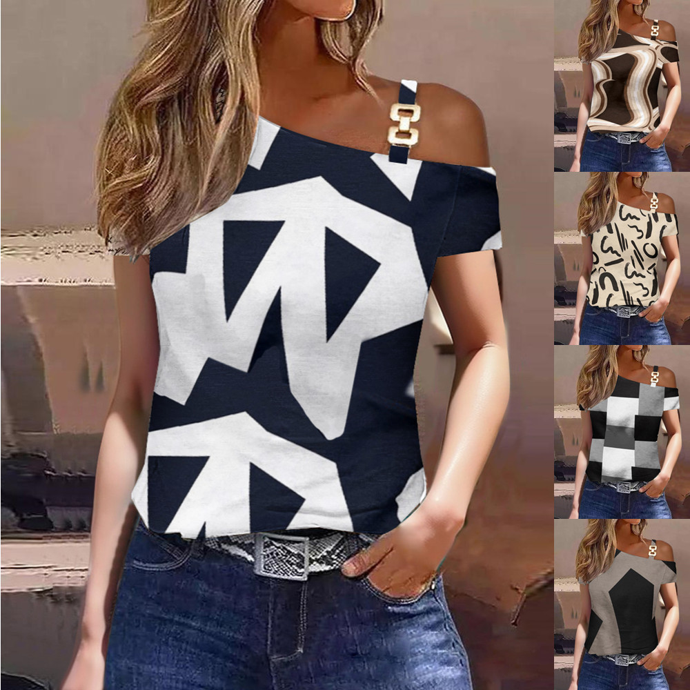 2025独立系ウィッシュアマゾン人気夏シンプル半袖メタルバックルプリントトップTシャツレディース