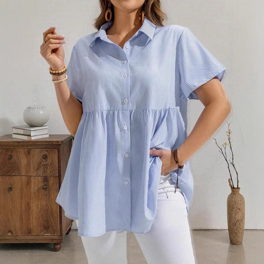 国境を越えた貿易アマゾン 2025 新しい夏の気質エレガントなルーズカジュアル半袖ラペルストライプシャツ