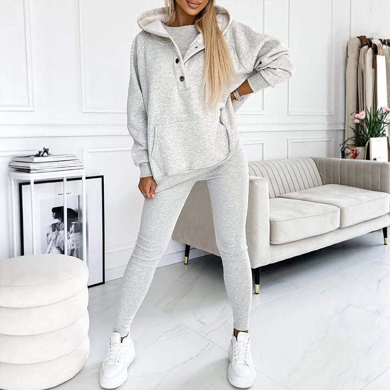 2025 Amazon ホットアイテム レディース スポーツ カジュアル フード付き スウェットシャツ 厚みのある糸 スリム ベスト パンツ 3 点セット