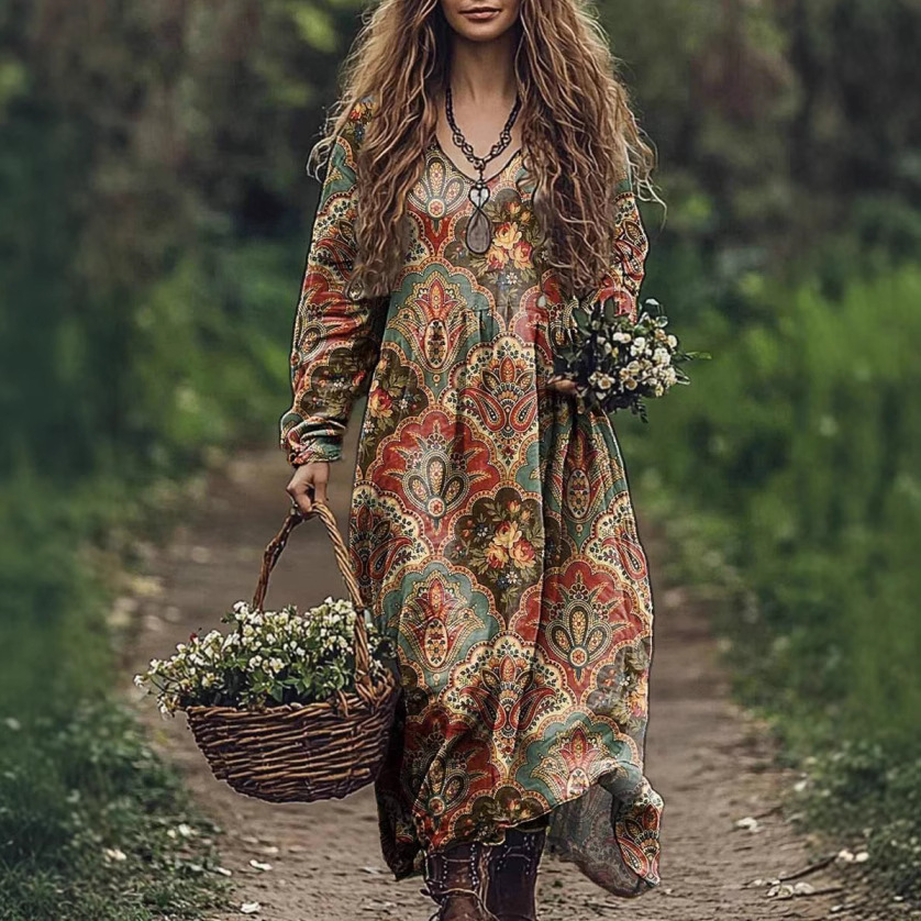 2025年アマゾン独立系クロスボーダーレディースヨーロッパとアメリカのレトロな牧歌的なスタイルのカジュアルな長袖の新しいロングスカートドレス