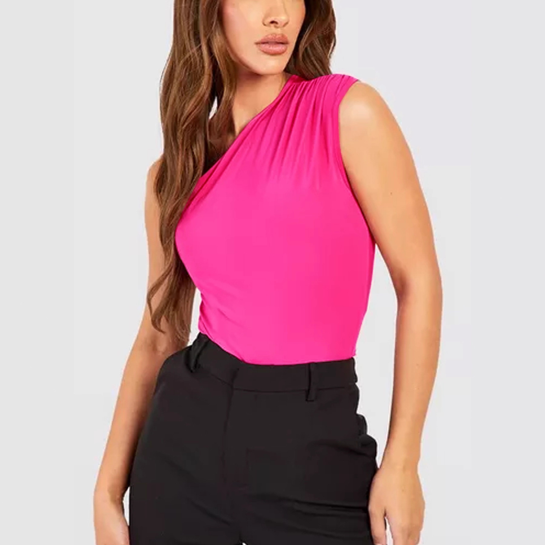 2025 ヨーロッパとアメリカの夏のクロスボーダー新しい女性のセクシーなファッションスリムフィット斜め襟ワンショルダーノースリーブプリーツジャンプスーツ