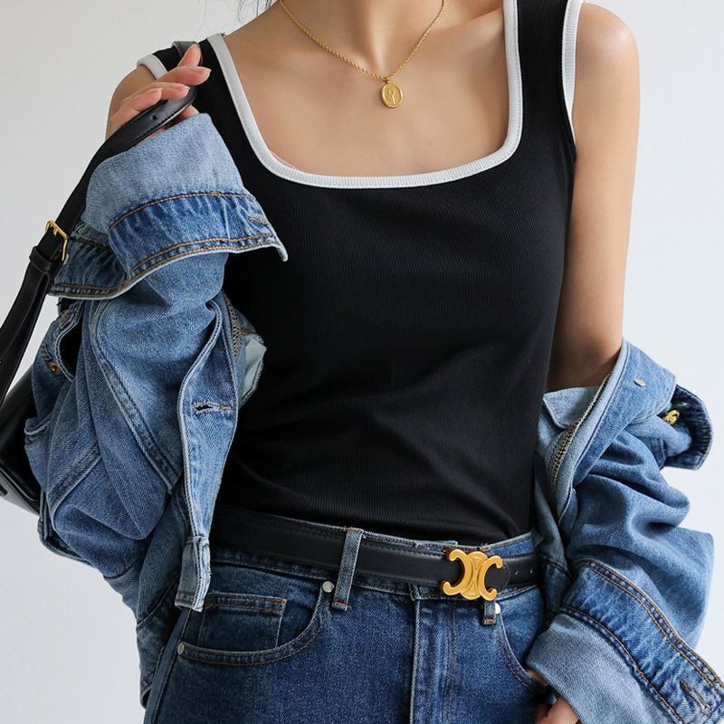 クロスボーダー婦人服夏アウター、胸をカバー、つば広露出防止白ボトムキャミソールノースリーブトップ