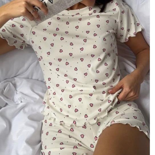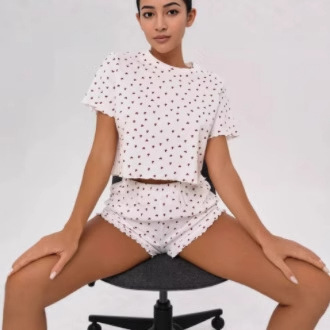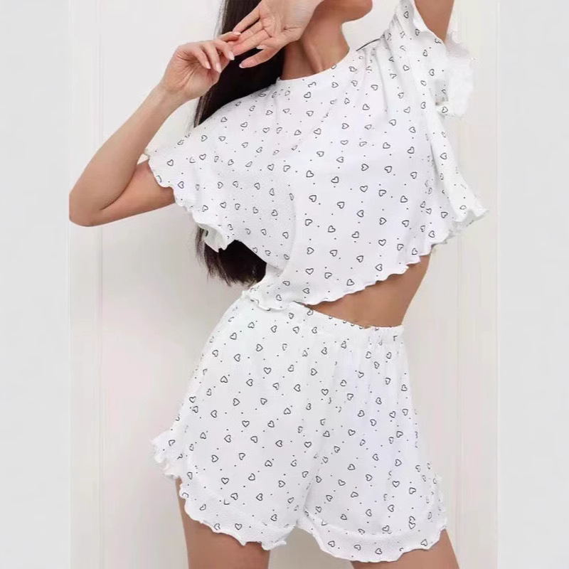 ヨーロッパとアメリカのクロスボーダーウェア新しいラブプリントニットファッションソフト半袖ショーツパジャマセット快適なホーム