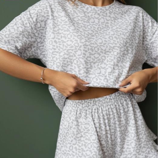 夏のクロスボーダーヨーロッパとアメリカのファッションルーズヒョウ柄プリント快適なホーム半袖ショーツ外国貿易パジャマセットホーム