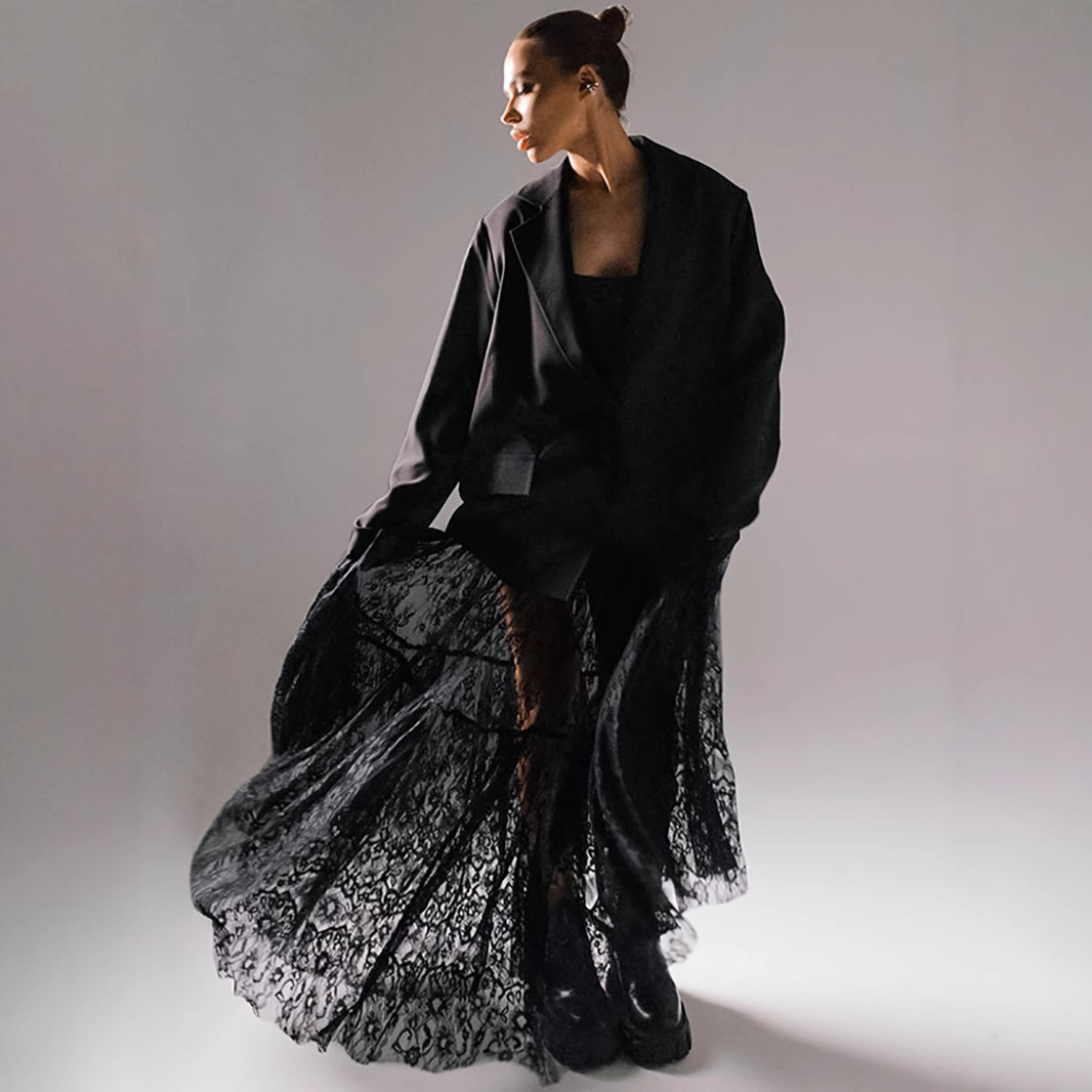 2025年アマゾンヨーロッパとアメリカのクロスボーダー新作春夏女性のロングスカートシースルーレースA裾通勤スタイルスカート