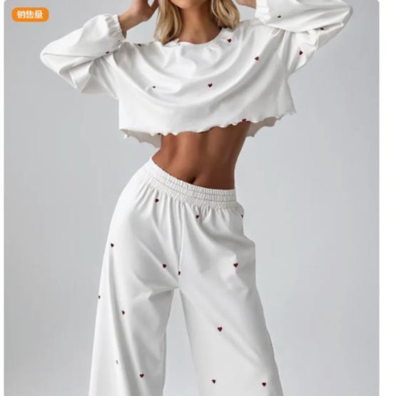 ヨーロッパとアメリカの秋の新しいアマゾンのゆったりとした快適なピットストリップラブプリント長袖ズボンパジャマセットホーム服