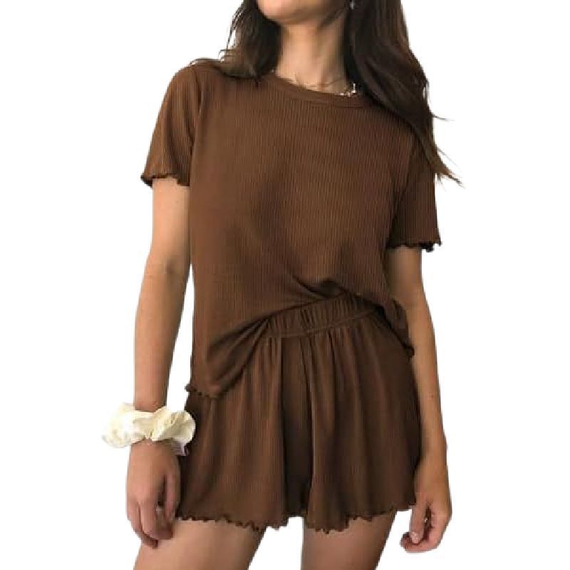 新しい Amazon 女性のパジャマ 2 ピースリブニット半袖セット夏ソフトファッションカジュアルパジャマ
