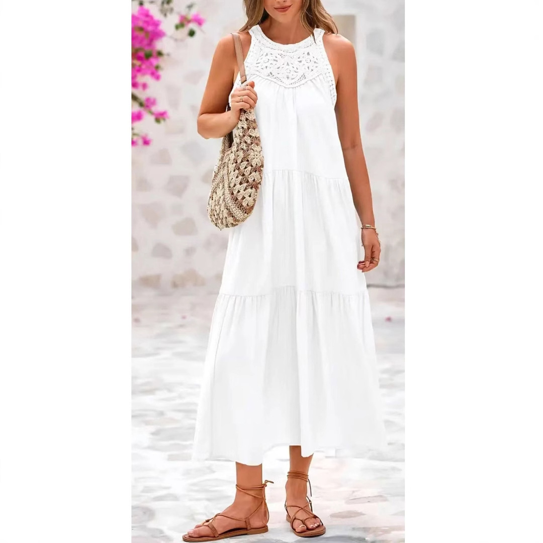 新しいアマゾン 2025 夏中空オフショルダードレスカジュアルノースリーブ A ラインレイヤードスイングロングスカート