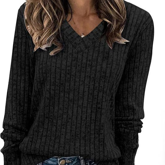 新しい女性の長袖シャツ V ネックカジュアルセーターベーシックニット 2025 秋のファッションプルオーバートップ