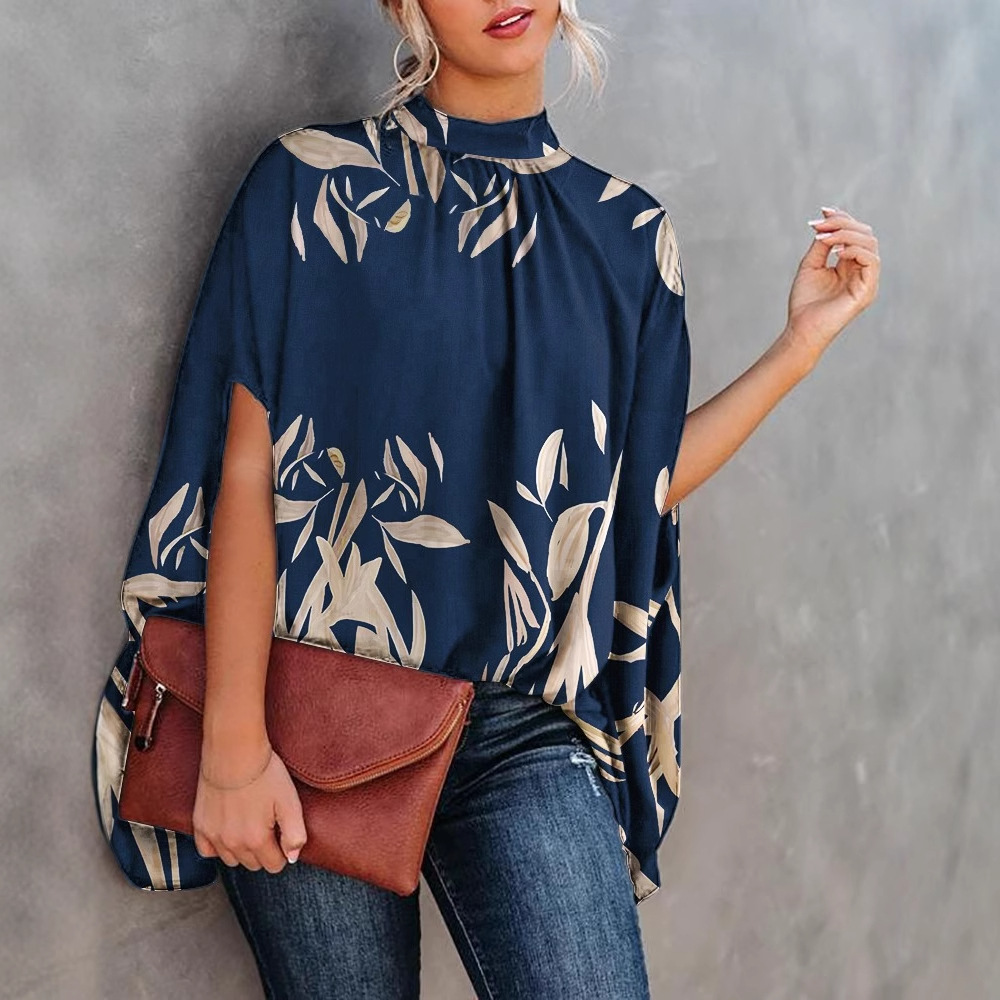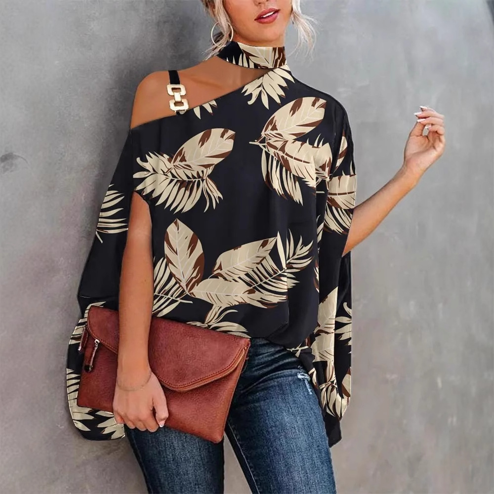 2025 独立したウェブサイトウィッシュアマゾン人気の夏のホルターネックバットスリーブプリントシャツレディースシャツ婦人服