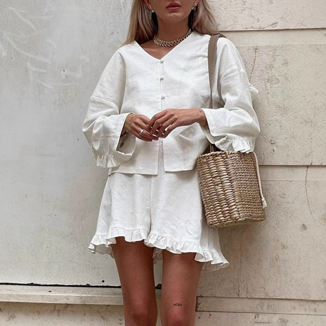 ヨーロッパとアメリカのクロスボーダーAmazonウィッシュ外国貿易夏の新しい婦人服新しいフリルファッションショートパンツカジュアルスーツ