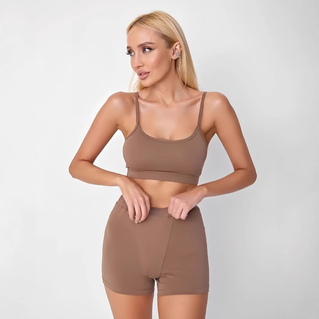 クロスボーダーヨーロッパとアメリカのサスペンダースーツハイウエストショーツパジャマ女性のホームウェアヨガスポーツセクシースーツツーピースセット