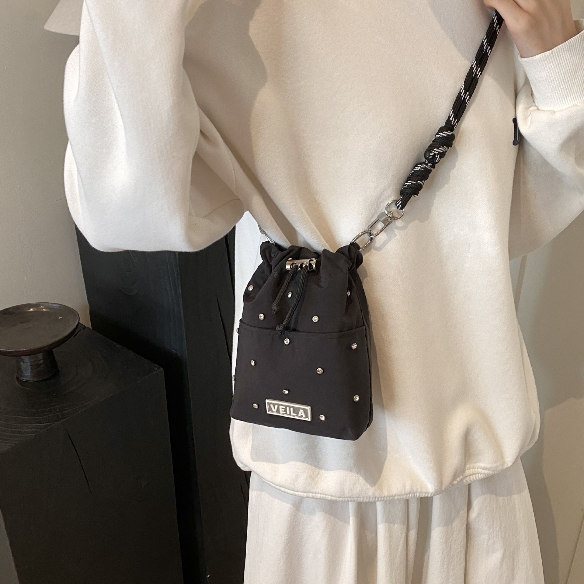 2024 新しい夏のニッチデザイン携帯電話バッグ韓国スタイルリベットバケットバッグ女性のシンプルなショルダークロスボディバッグ