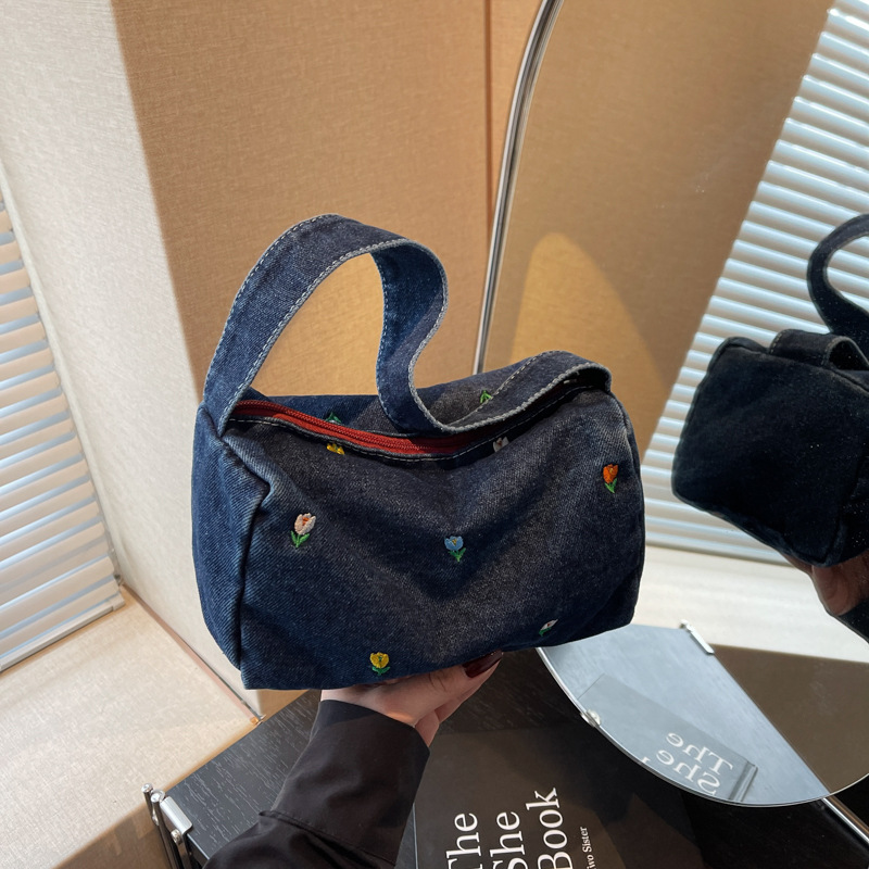 デニムの小さい方のカバンのかわいいプリント2025春の新型の軽い女性のカバンの刺繍の手提げのかわいいレジャーのカバン