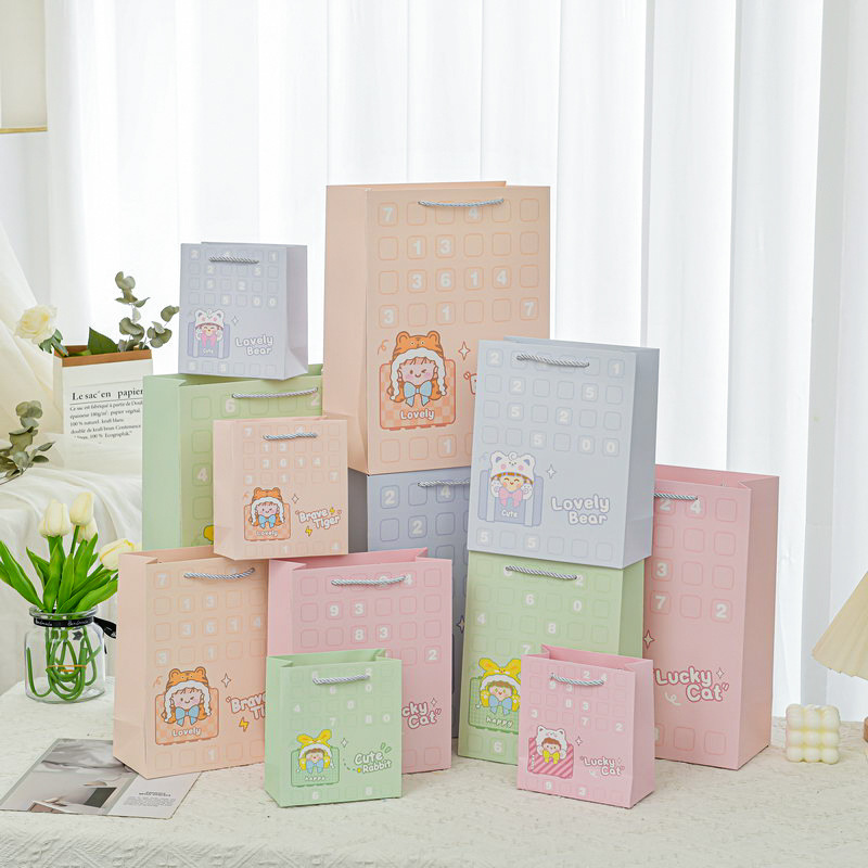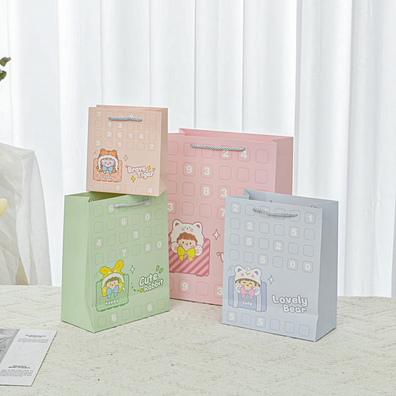美しい小さい贈り物の包装袋の漫画の手提げ紙袋の高級な贈り物の手提げ袋のアクセサリーの服装は注文して卸売りします。