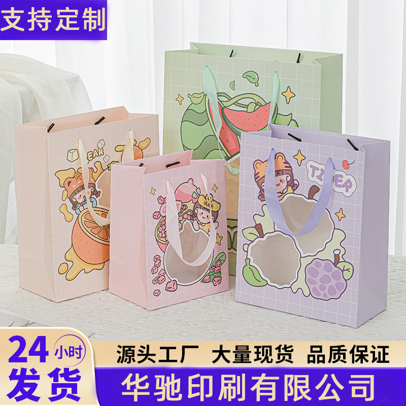 新商品アニメかわいい透明ギフトバッグ果物の窓開け模様手提げ袋祝日プレゼント包装お土産袋