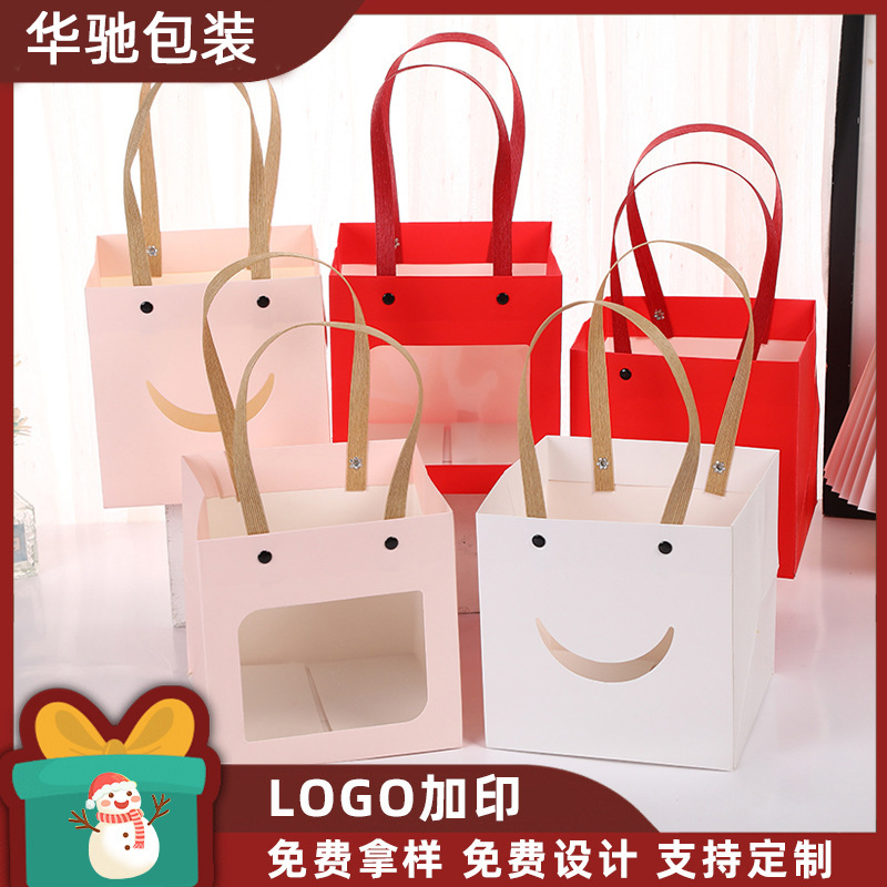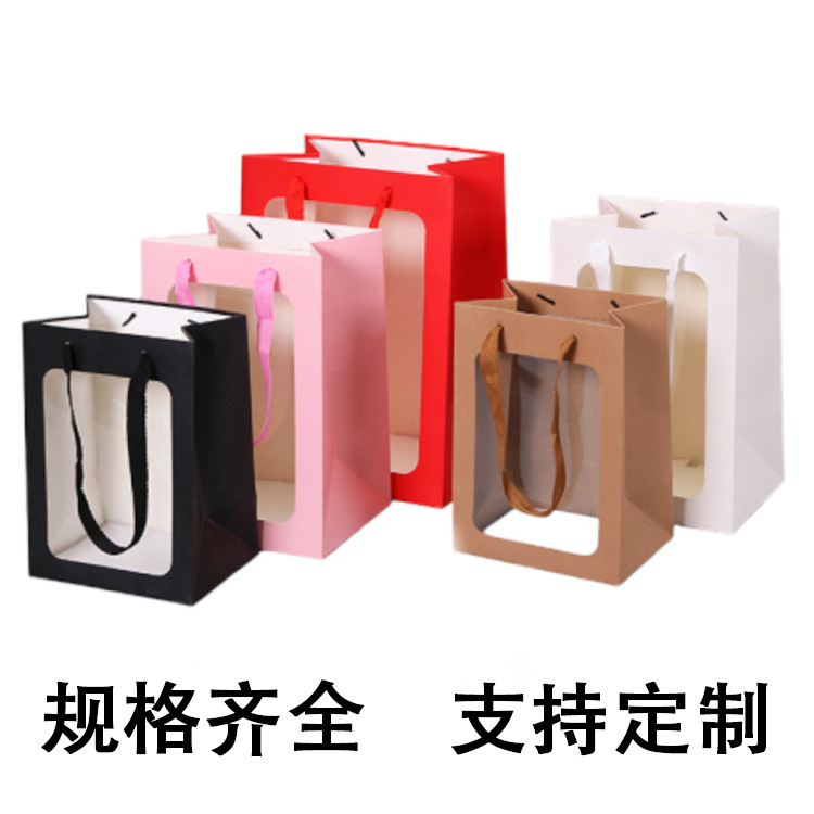ギフトバッグ520生花手提げ袋白カード包装紙袋開窓透明ギフトバッグバレンタインデーギフトボックス