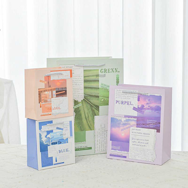 Ins風横板格子ギフトバッグ文芸小清新手提げ袋現物紙袋服装アクセサリー包装袋