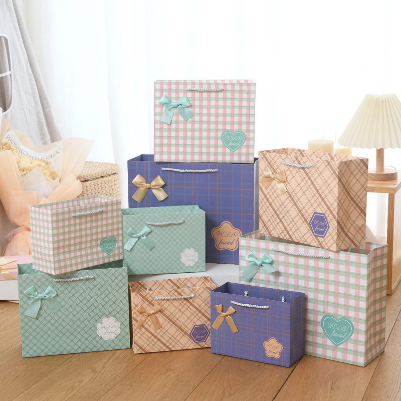 Ins風伴手礼袋紙袋蝶結び格子手提げ袋服装装飾品レジ袋礼箱包装袋
