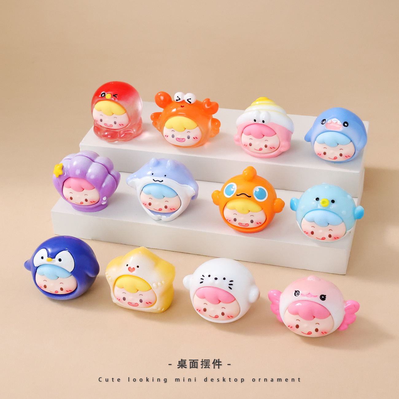 海洋動物シリーズ萌え粒公仔樹脂置物潮遊び盲箱生放送対対対テーブル装飾小置物
