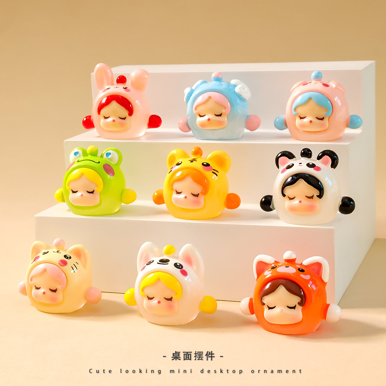 かわいい動物の女の子の公仔diy樹脂のデスクトップのミニの小さい置物のアクセサリーのファッションは盲目の箱の萌え粒を遊びます。