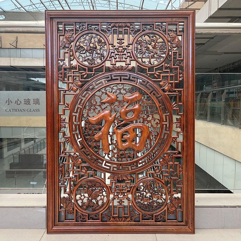 東陽木彫り福字ストラップ彫刻玄関縦スクリーン装飾画中国式客間ソファー壁掛け香樟実