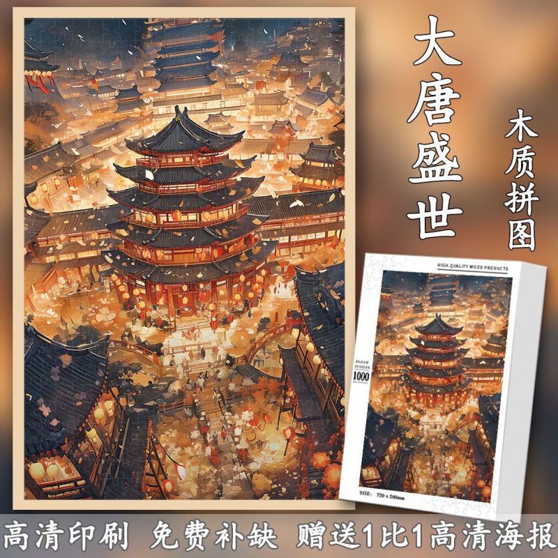 大唐盛世木質パズル1000枚枠付きdiy成人玩具客間玄関装飾プレゼント