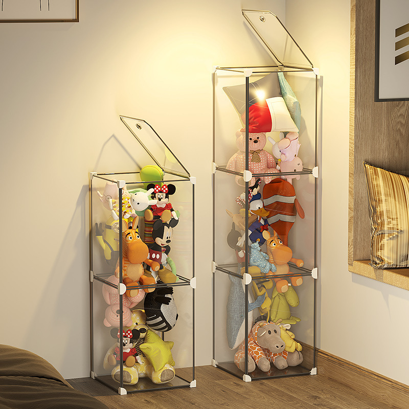 整理箱透明ケージ防塵家庭用ぬいぐるみ人形棚展示人形収納桶金属